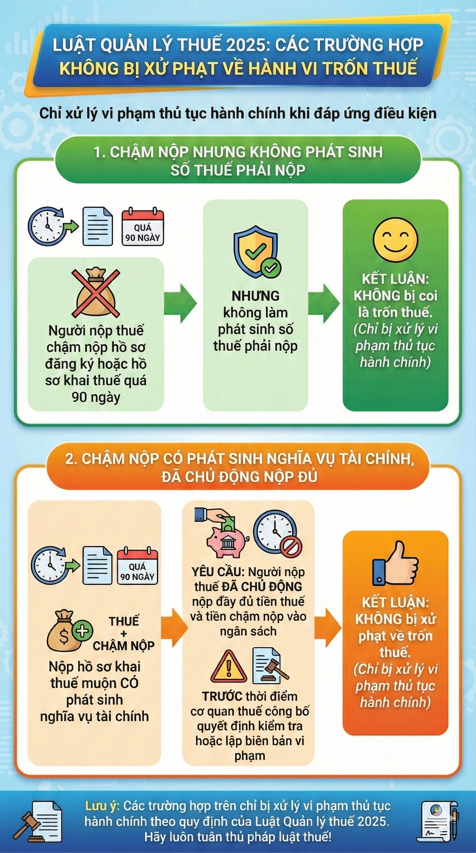 Việc luật hóa cụ thể các hành vi trốn thuế và các trường hợp được loại trừ xử phạt cho thấy định hướng quản lý thuế theo hướng minh bạch, phân loại rõ ràng giữa gian lận có chủ ý và vi phạm thủ tục. Qua đó, Luật Quản lý thuế 2025 được kỳ vọng sẽ góp phần nâng cao hiệu quả chống thất thu ngân sách, đồng thời tạo môi trường tuân thủ công bằng, ổn định cho người dân và doanh nghiệp từ năm 2026 trở đi.