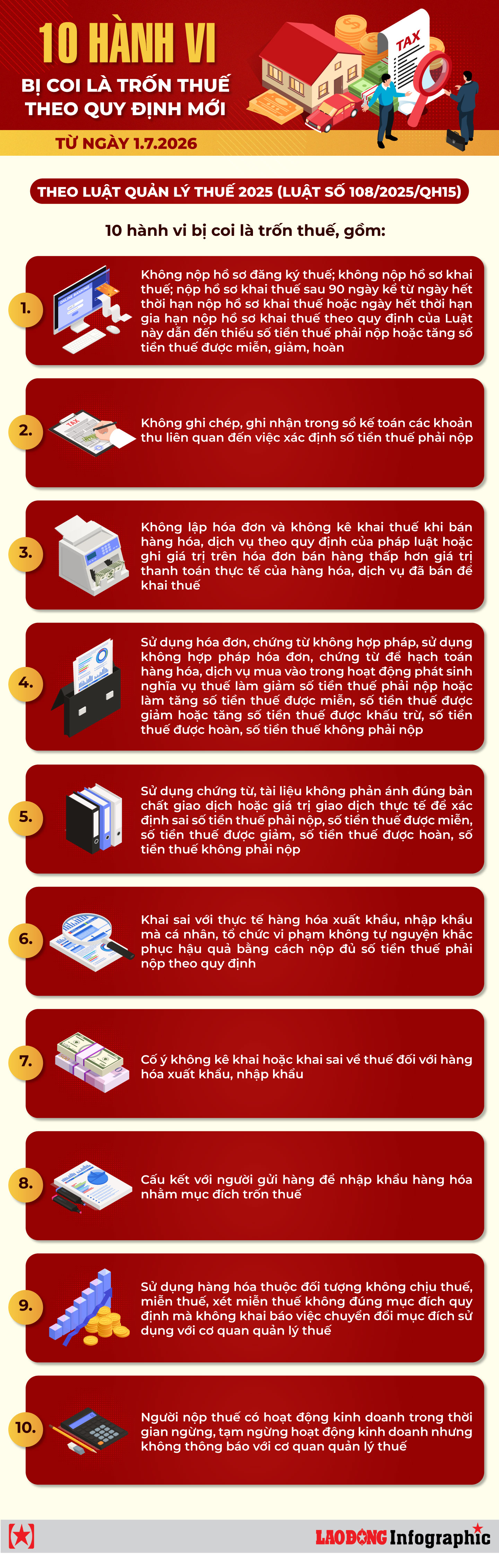 Luật Quản lý thuế 2025 quy định 10 nhóm hành vi bị coi là trốn thuế từ ngày 1.7.2026. Người nộp thuế cần nắm rõ để tránh rủi ro pháp lý không đáng có.