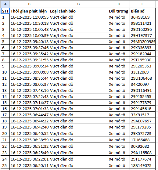 Theo Cục Cảnh sát giao thông, từ 12h00’ ngày 9/12/2025 đến 12h00’ ngày 10/12/2025, qua trích xuất dữ liệu từ camera A.I được thí điểm lắp đặt tại nội đô Hà Nội (nút giao phố Phạm Văn Bạch - Hoàng Quán Chi), đã tự động phát hiện 129 trường hợp xe mô tô (xe máy) vi phạm.