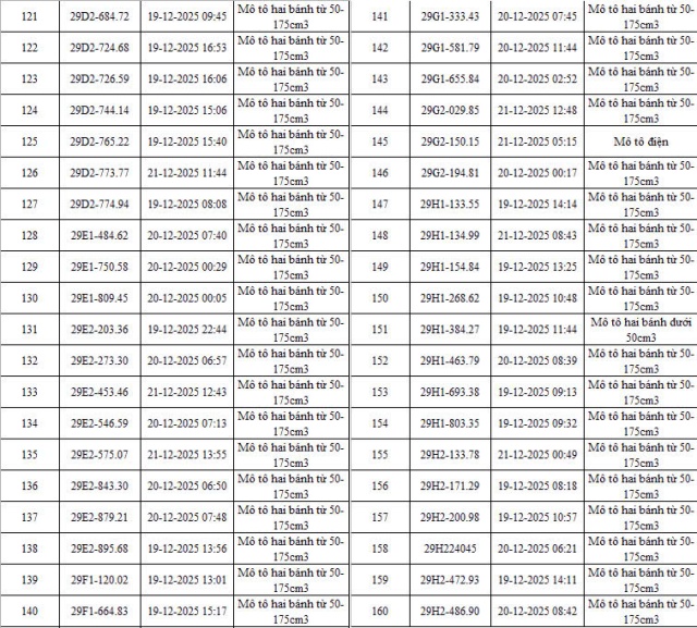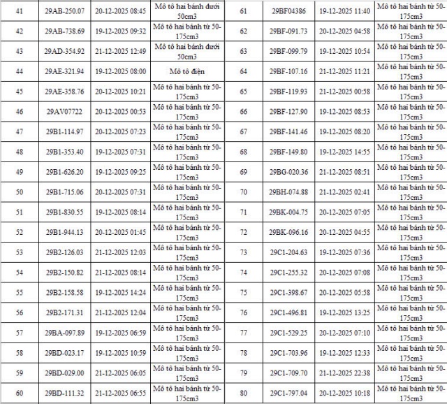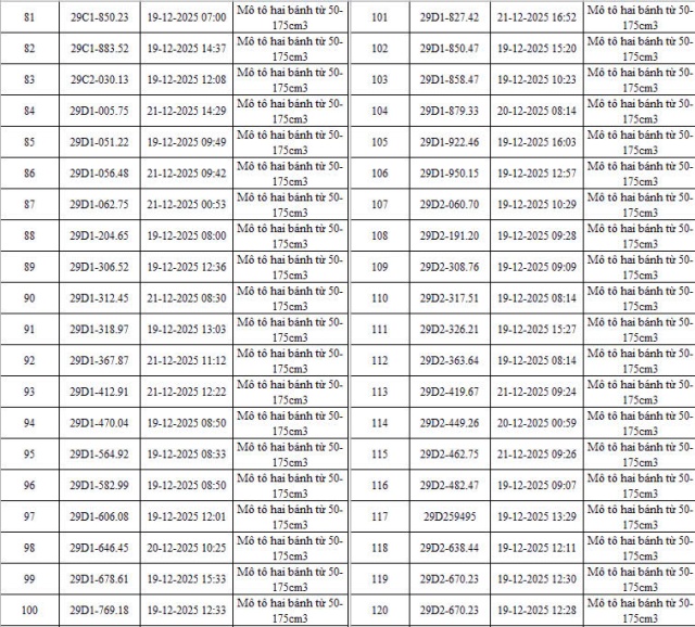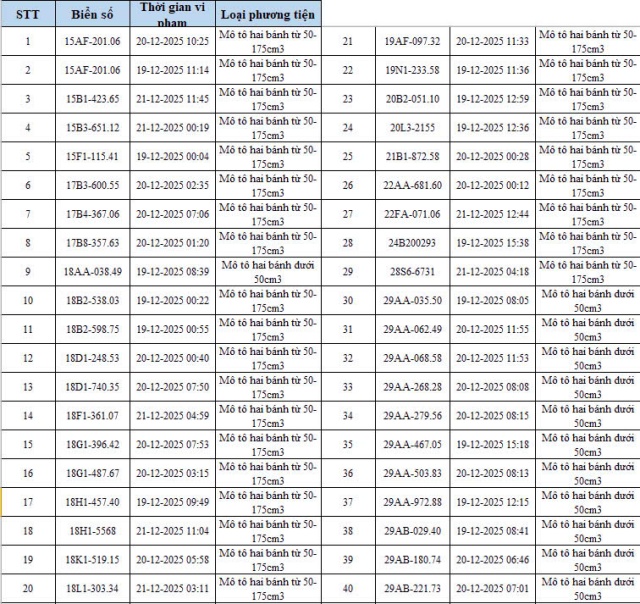 Cục Cảnh sát giao thông cùng công an nhiều địa phương liên tiếp công bố danh sách phương tiện vi phạm bị xử lý phạt nguội qua hệ thống giám sát, trong đó xe máy vi phạm chiếm tỷ lệ đáng chú ý.