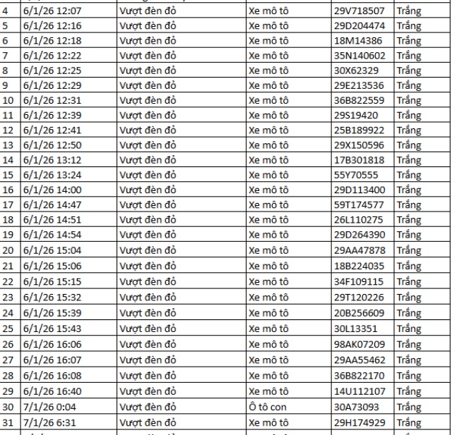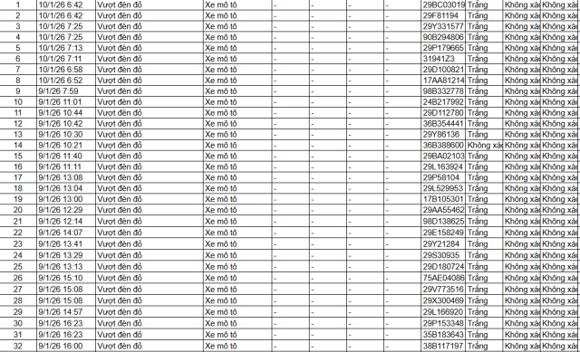 Mới nhất, Công an TP Hà Nội thông báo phát hiện 342 phương tiện vi phạm thông qua hệ thống camera AI giao thông trong thời gian từ ngày 19-12-2025 đến 21-12-2025. Đáng chú ý, trong số này có tới 260 trường hợp xe máy vi phạm, tập trung vào các lỗi phổ biến như vượt đèn đỏ, đi sai làn đường, không chấp hành hiệu lệnh của đèn tín hiệu giao thông. Sau khi xác minh, Phòng Cảnh sát giao thông đã tiến hành gửi thông báo phạt nguội đến từng chủ phương tiện theo đúng quy trình.