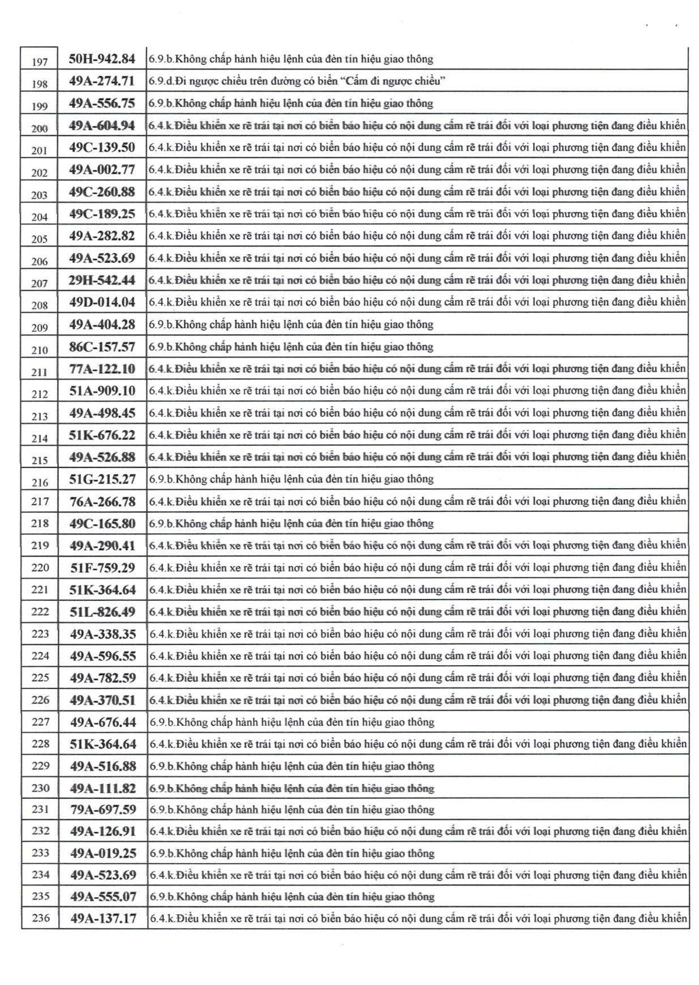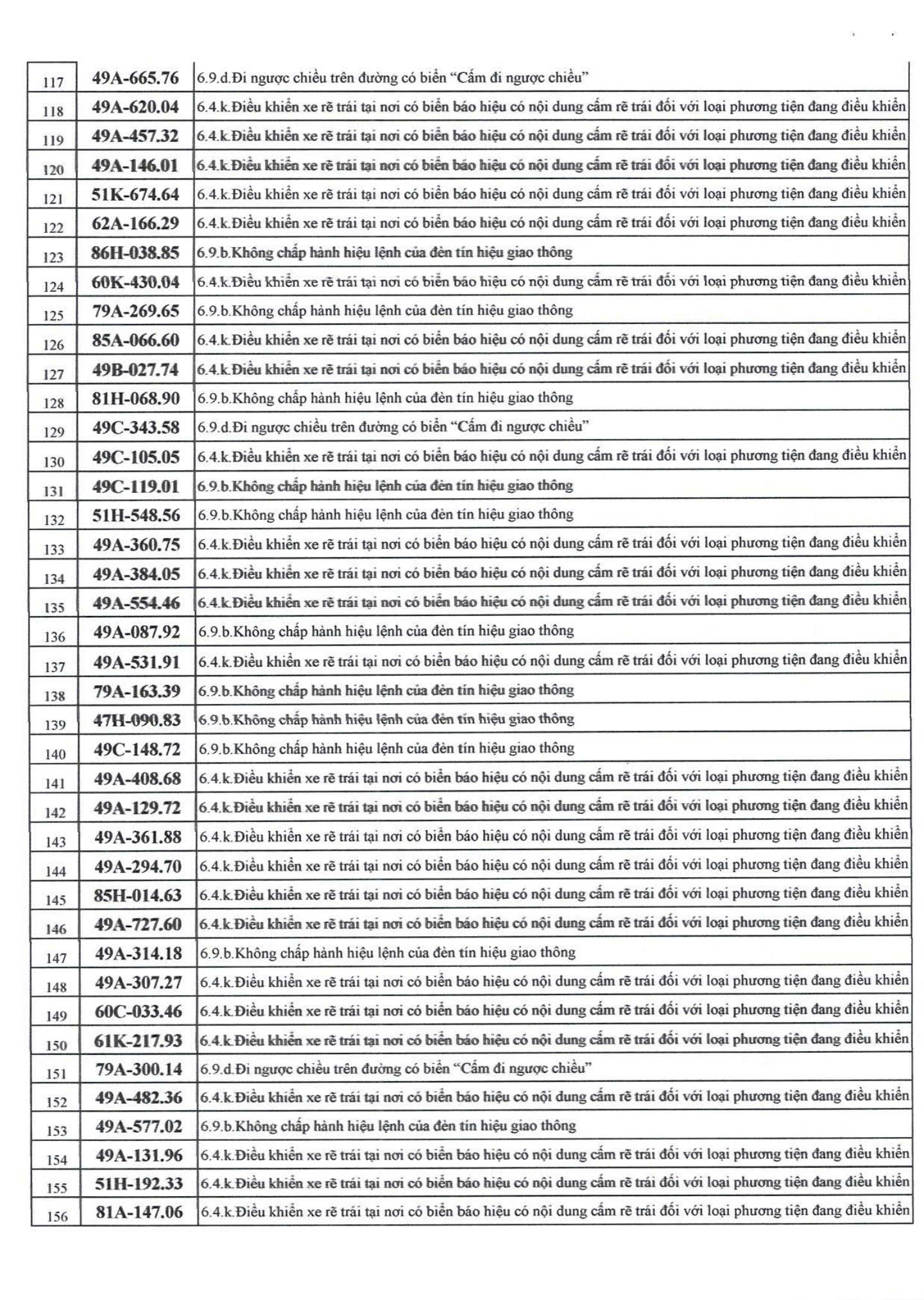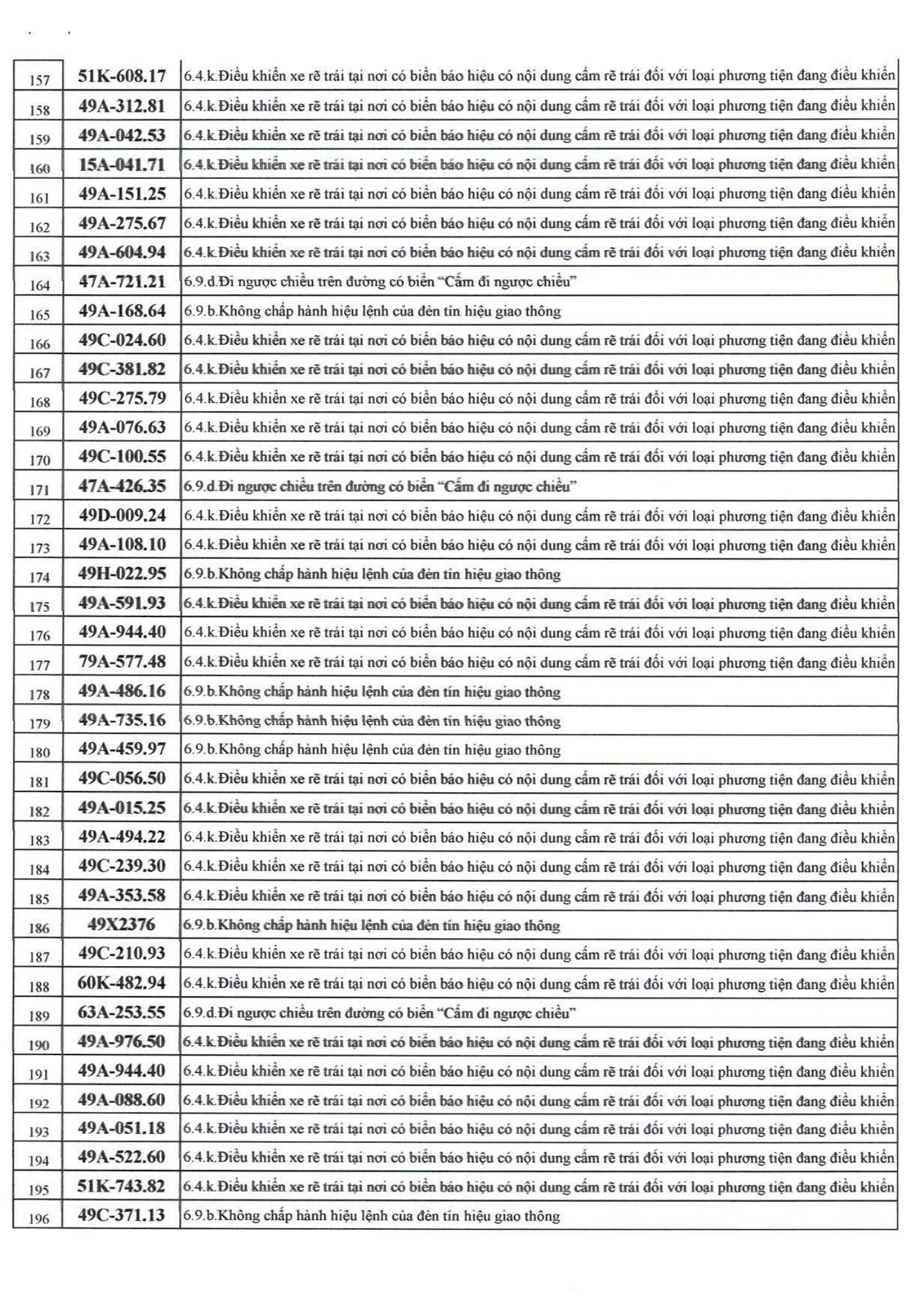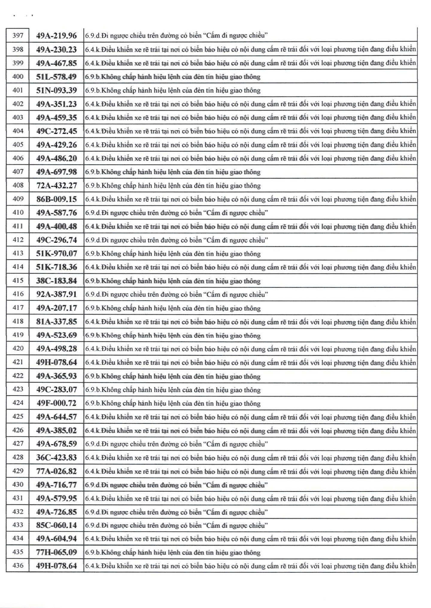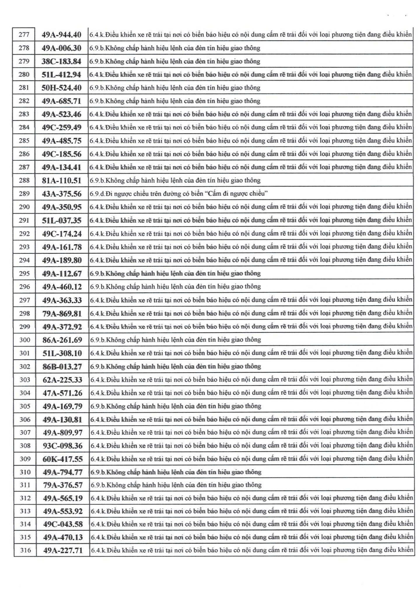 Ngày 24/12, Phòng Cảnh sát Giao thông - Công an tỉnh Lâm Đồng đã thông báo kết quả ghi nhận phương tiện vi phạm giao thông đường bộ từ ngày 01/11/2025 đến ngày 15/12/2025. Theo đó, có 500 trường hợp vi phạm phạt nguội trong thời gian này với các lỗi thường gặp là đi ngược chiều, không chấp hành hiệu lệnh của đèn tín hiệu giao thông... Trong thời hạn 30 ngày (kể từ ngày vi phạm), yêu cầu chủ phương tiện, tổ chức, cá nhân có liên quan đến vi phạm hành chính liên hệ để nộp phạt.Danh sách phạt nguội cụ thể như sau: