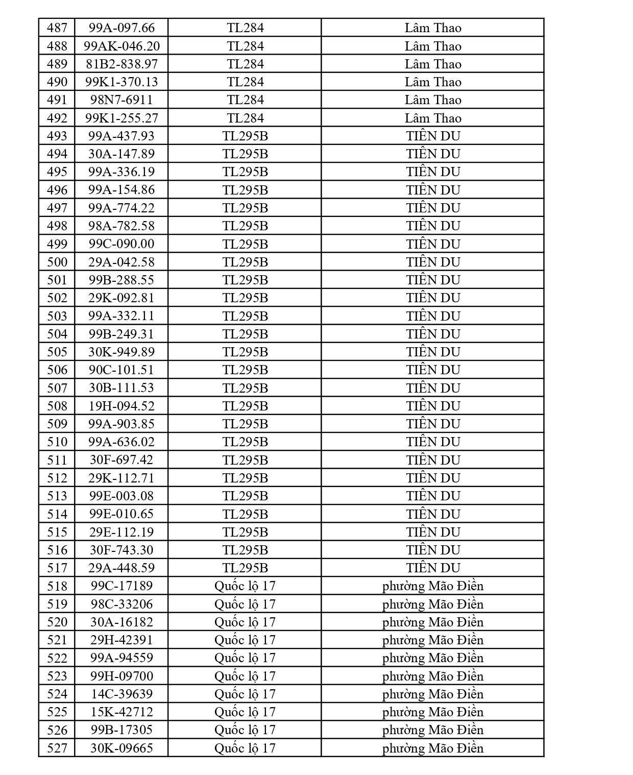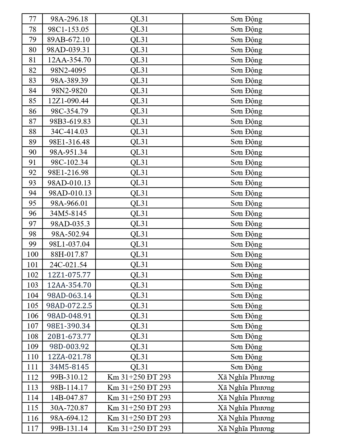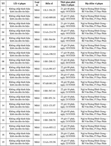 Cảnh sát giao thông Cao Bằng cho biết, từ ngày 19.3 đến ngày 25.3 qua khai thác hệ thống camera giám sát và sử dụng thiết bị nghiệp vụ, lực lượng cảnh sát giao thông đã ghi nhận nhiều trường hợp xe máy vi phạm. Danh sách như sau: