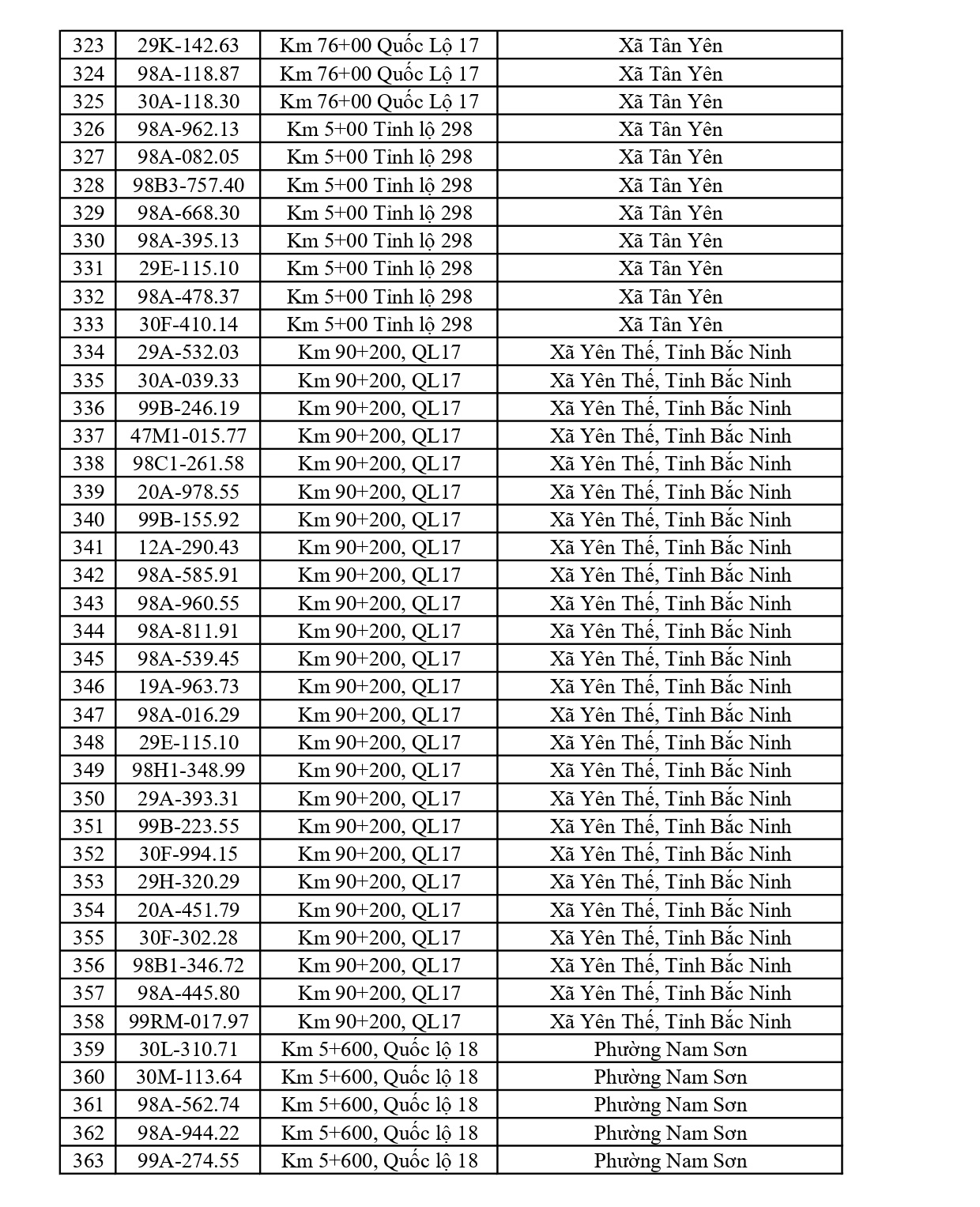 Công an tỉnh Bắc Ninh mới đây đã công bố danh sách các phương tiện vi phạm lỗi chạy quá tốc độ từ ngày 30/3/2026 đến ngày 05/4/2026.