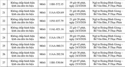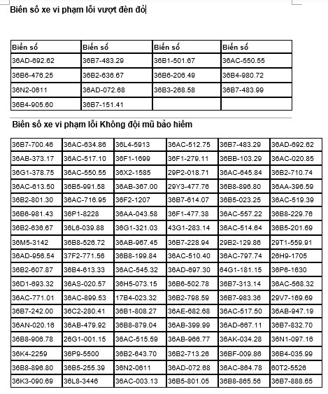 Phòng Cảnh sát giao thông, Công an tỉnh Thanh Hoá cho biết, từ ngày 24.2 đến ngày 5.3, qua khai thác hệ thống camera giám sát và sử dụng thiết bị nghiệp vụ, lực lượng cảnh sát giao thông đã ghi nhận nhiều trường hợp xe máy vi phạm. Chi tiết như sau: