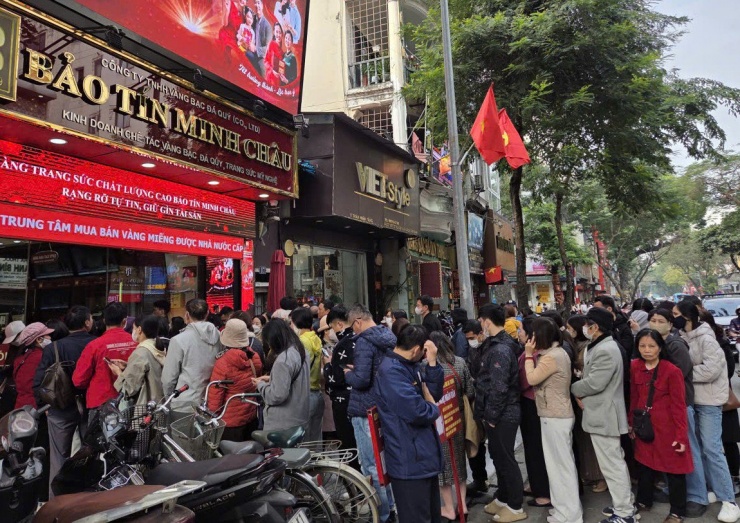 Người dân xếp hàng chờ mua bán vàng ở Hà Nội. Ảnh: Dương Ngọc