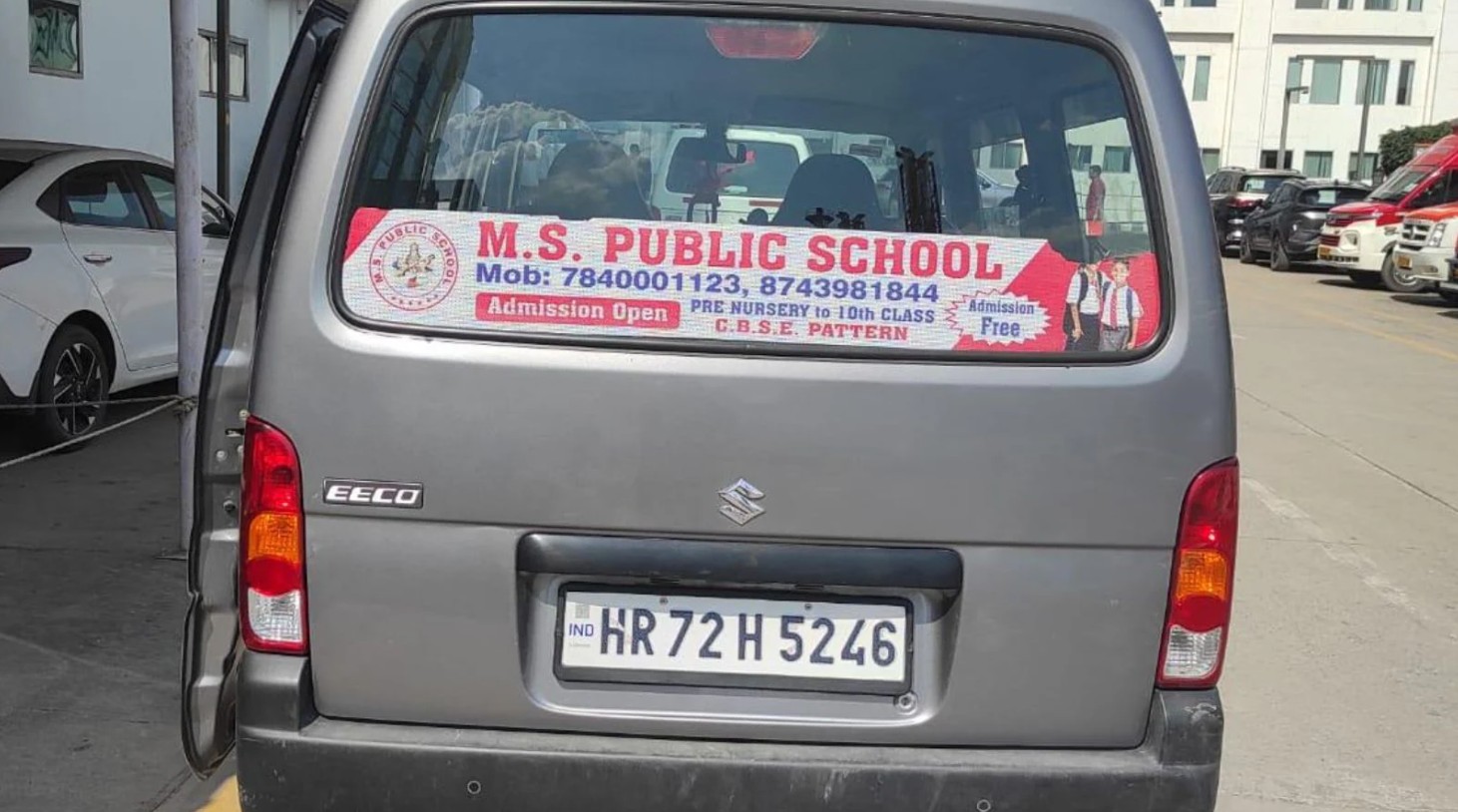 Đúng lúc này, tài xế điều khiển chiếc xe Maruti Suzuki Eeco (thuộc sở hữu của trường MS Public School) với tốc độ cao, vô cùng bất cẩn. Bất ngờ, chiếc xe đi lùi lại và tông trúng vào cậu bé.