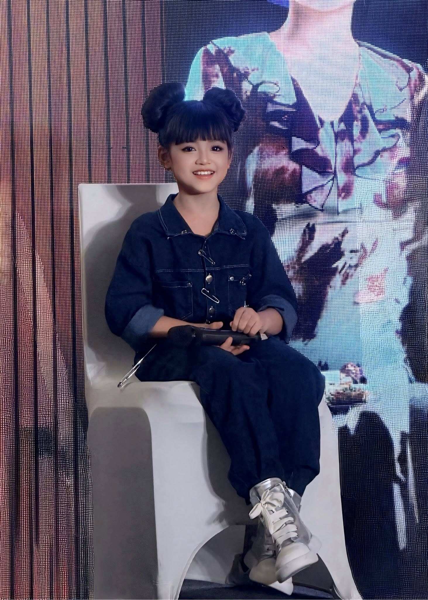 Nữ MC bày tỏ: "Con có biết là con 8 tuổi đóng vai 12 tuổi nhưng đúng là chỉ lo về chiều cao, chứ sự già dặn, kinh nghiệm thì còn có thể đóng vai 18 tuổi. Con có tin không chứ mấy anh chị trẻ trẻ nhiều khi còn ngại, trả lời thế này ai nghĩ 8 tuổi".