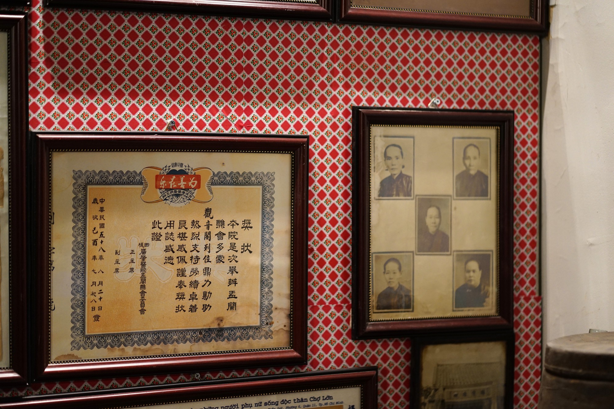 “Đây là nơi mình tái hiện lại không gian sống của những nhóm Tự Sư Nữ ở Chợ Lớn. Những bức ảnh này ở bên Tụ Quần Cư, lúc các cô còn sinh sống ở đó” Anh Sanh chỉ vào bức ảnh của những người phụ nữ đã vàng úa nhuốm màu thời gian, thậm chí đã có những phần bị mối mọt gặm nhấm loang lổ… tựa như ký ức về họ dần tan biến trong một TP.HCM với nhịp sống quá nhanh.