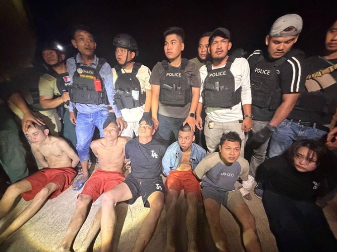 Các nghi phạm khi bị bắt hôm 18/11. Ảnh: Khmer Times