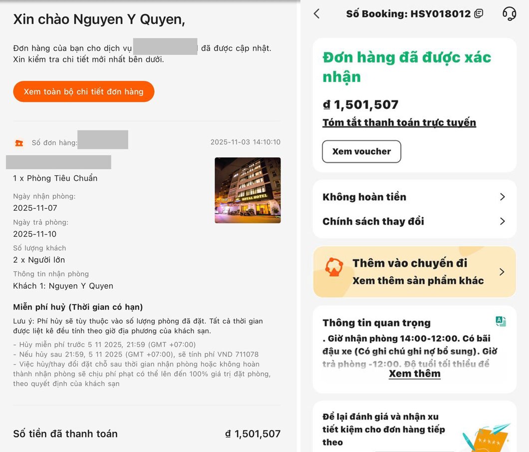 Hào hứng ra Hà Nội từ đầu tháng 11 để xem concert G-Dragon, chị Nguyễn Y Quyên (Đồng Nai) đã đặt phòng cho 4 ngày 3 đêm từ 7 - 10.11.2025 thông qua một ứng dụng du lịch nổi tiếng.