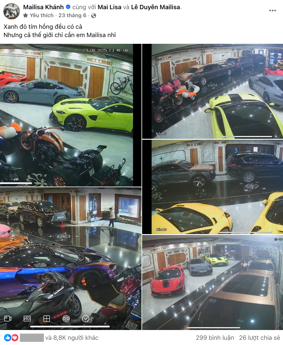 Trong năm 2025, Hoàng Kim Khánh thường xuyên đăng ảnh camera gara này lên MXH, bày tỏ niềm đam mê siêu xe.