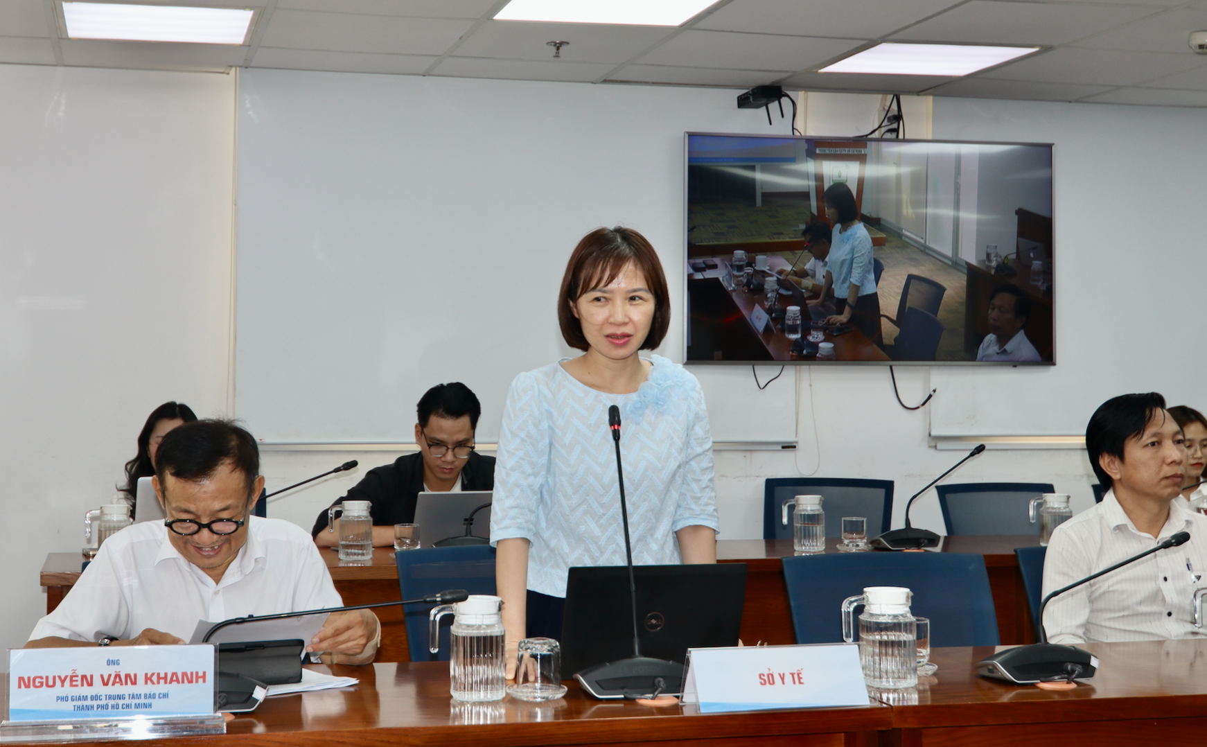 Bà Lê Hồng Nga, Phó Giám đốc Trung tâm Kiểm soát Bệnh tật TPHCM phát biểu tại buổi họp báo