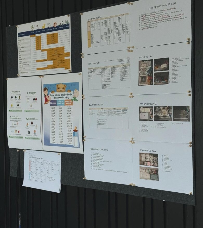 Bà mẹ cũng giải thích thêm về cách nuôi con của mình "Quy trình chỉ là lịch ghi chép để ba mẹ canh giờ em sinh hoạt cho bớt bất ngờ. Tụi mình cũng biết mỗi người có cách dạy con riêng và cũng biết có bạn đẻ xong tự biết nuôi nhưng hai đứa chọn cách chủ động để biết mà hướng con đi dần dần, không sợ làm sai".
