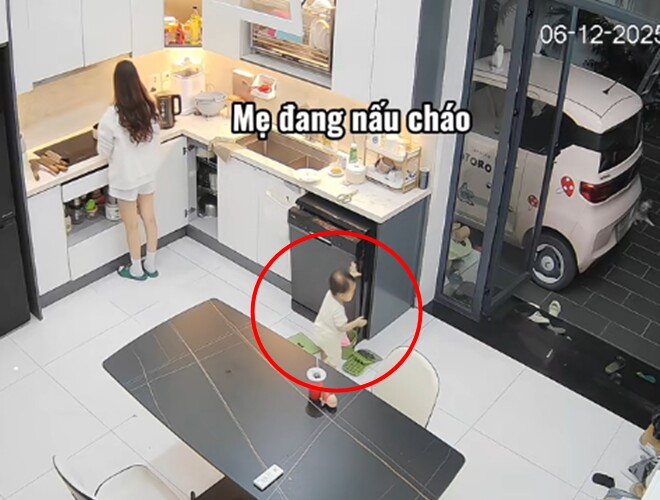 Theo chia sẻ từ tài khoản mạng xã hội Mẹ Mina, cô đăng tải đoạn video được cắt từ camera giám sát trong nhà của mình. Khung cảnh lúc đó cho thấy người mẹ đang lúi húi chuẩn bị nấu ăn ở khu vực bếp nấu và đứa con nhỏ chừng 1 tuổi đi còn chưa vững đang chơi xung quanh mẹ.