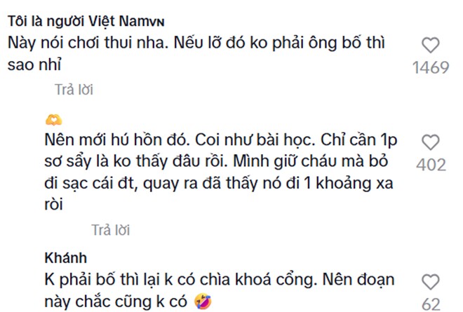 Bài học cuối cùng là từ những câu chuyện tưởng chừng “hú hồn” ấy, mỗi gia đình cần tự nhìn lại cách mình đang chăm sóc và bảo vệ con. Tiếng cười sau cùng không thể xóa đi bài học cảnh tỉnh ban đầu. An toàn của trẻ nhỏ luôn là điều không được phép đánh đổi, dù chỉ để tạo ra một khoảnh khắc vui vẻ.