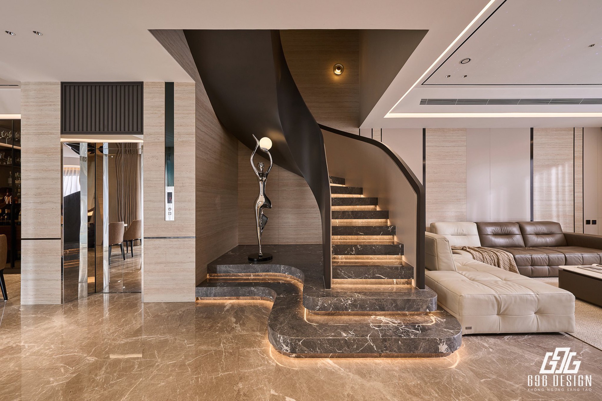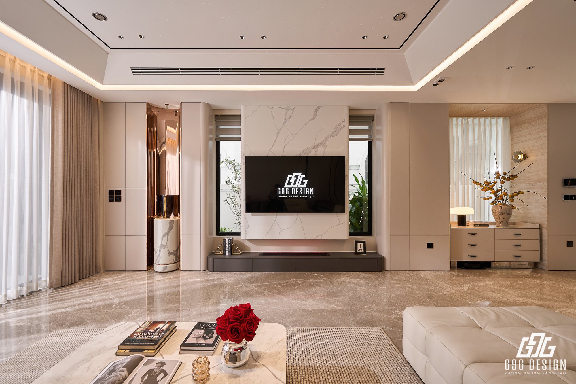 Toàn bộ biệt thự được thiết kế theo phong cách "modern luxury" - sang trọng nhưng không phô trương, tinh tế mà vẫn ấm áp. Từng góc nhỏ của căn nhà - từ bình hoa, đèn tường, cho đến thảm trải sàn - đều thể hiện gu thẩm mỹ của chủ nhân: trẻ trung, hiện đại và tinh tế.