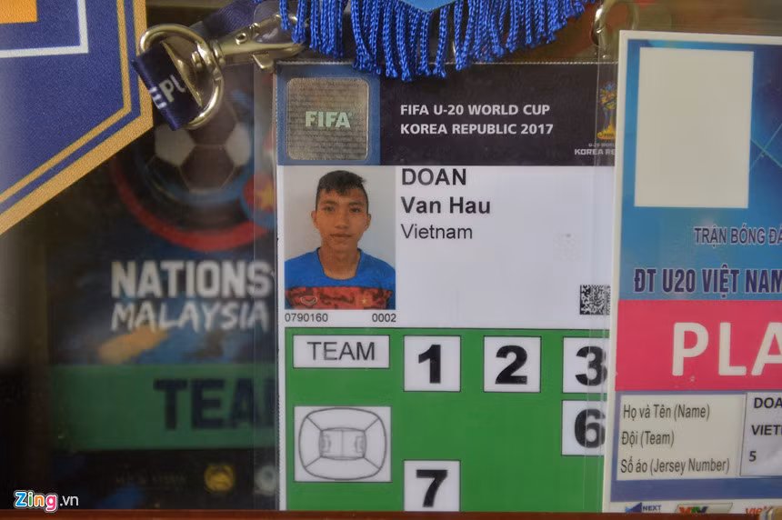 Chiếc áo số 5 của Đoàn Văn Hậu được cha mẹ em cất trang trọng. Áo có đầy đủ chữ ký của nhiều cầu thủ U20 tham dự VCK U20 Thế giới như Hà Đức Chinh, Quang Hải...