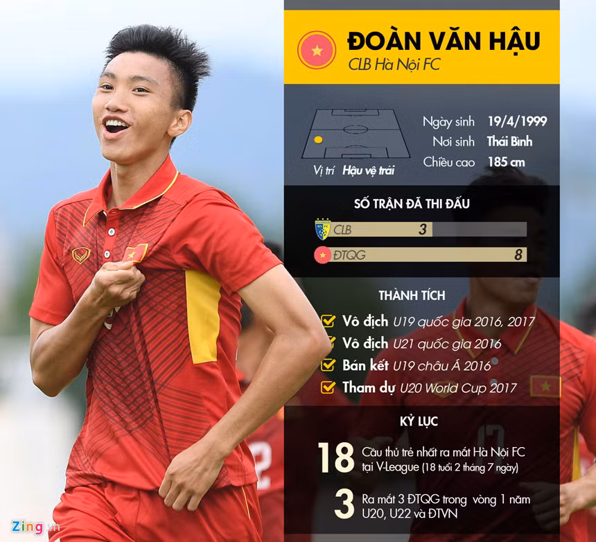 Đoàn Văn Hậu đang là một trong những tuyển thủ được chú ý nhất của U22 Việt Nam. Đồ họa: Trí Mai.