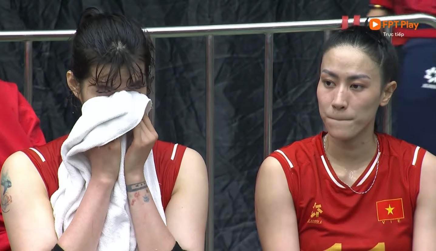 Trước đó, khoảnh khắc khi tuyển nữ Việt Nam vụt mất HCV dù chỉ cách Thái Lan 2 điểm, các nữ tuyển thủ rơi nước mắt như mưa vì tiếc nuối và bất lực. Thanh Thuý cũng đỏ hoe mắt, hình ảnh khiến hàng triệu người hâm mộ xót xa.