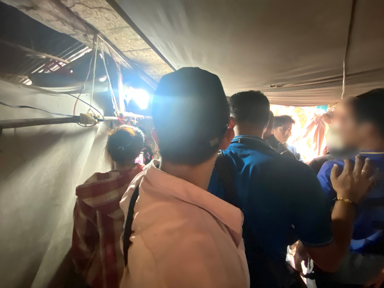 Căn nhà nằm ngay dưới dạ cầu, gần khu chợ đông đúc nên khi nhóm người kéo đến, không khí khu vực này trở nên nhộn nhịp hẳn. Người dân xung quanh tò mò đứng xem, bàn tán xôn xao.