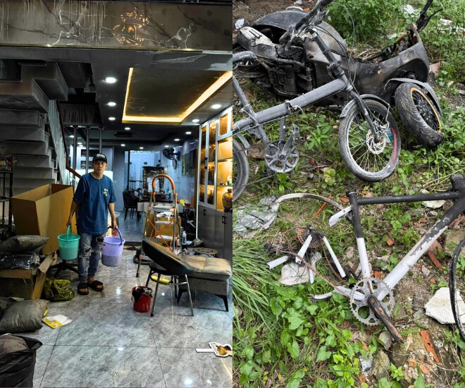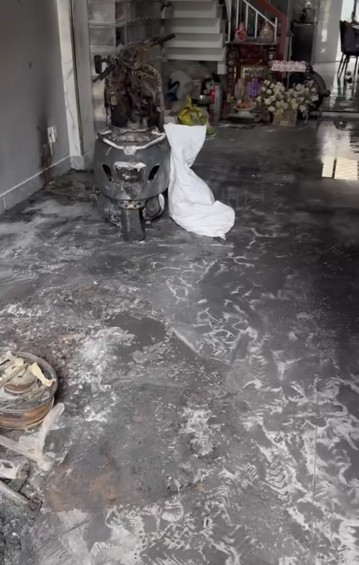 Bà xã Phạm Trưởng cho hay: “Sự cố nhà em sau 1 đêm, cũng may cả nhà bình an. Thiệt h:ại tài sản nặng nề: ch:áy xe điện, xe đạp, nhà hư hết 4 lầu, hư nhiều áo quần, hàng hóa, đồ đạc,...