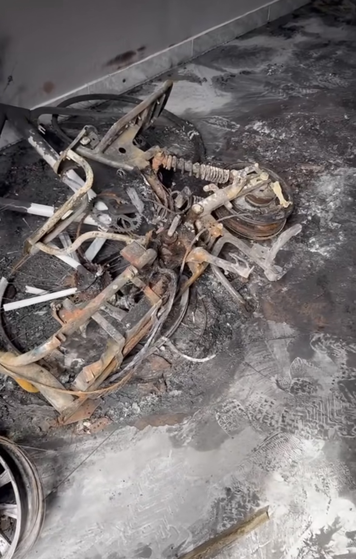 Cảnh tro bụi bám đen nội thất nhà Phạm Trưởng sau vụ ch:áy.