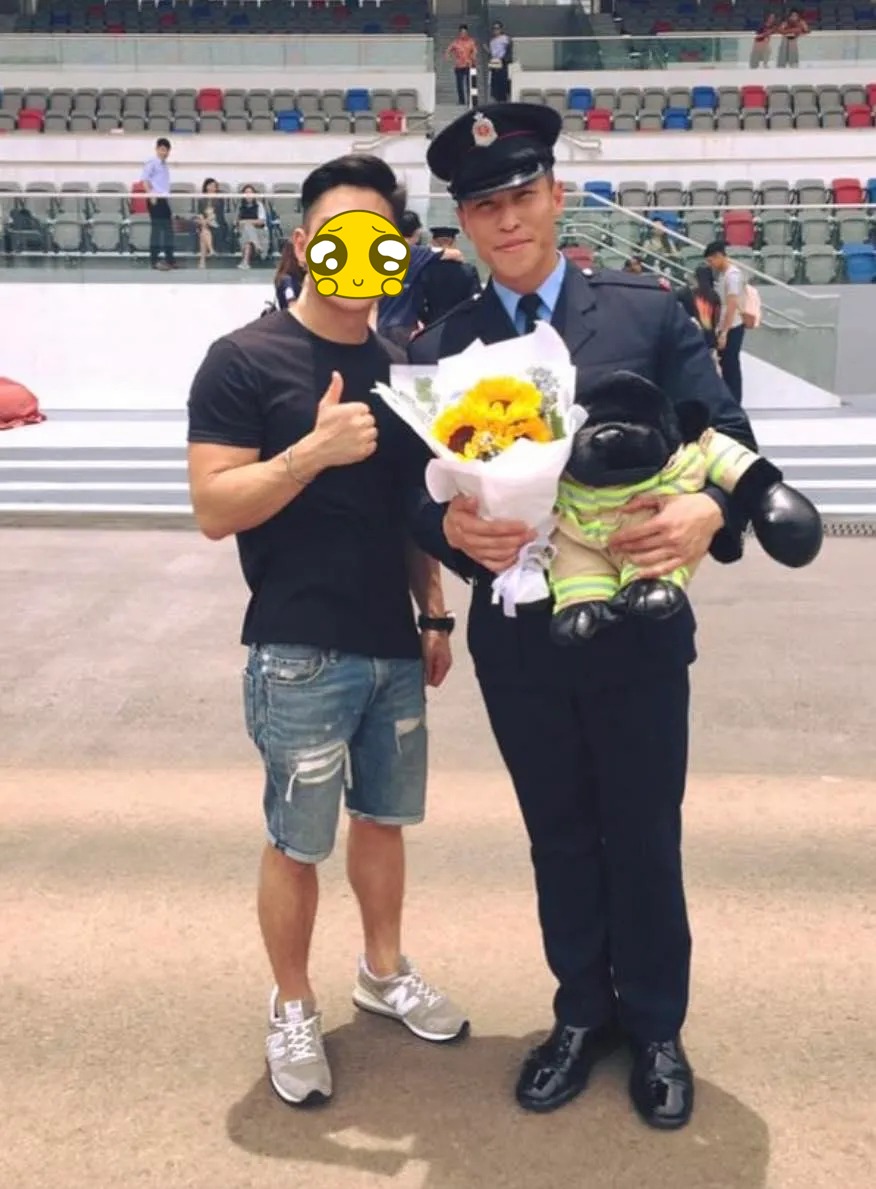 Ho bên bạn bè trước ở lễ tốt nghiệp trường cứu hỏa. Ảnh: Standard HK
