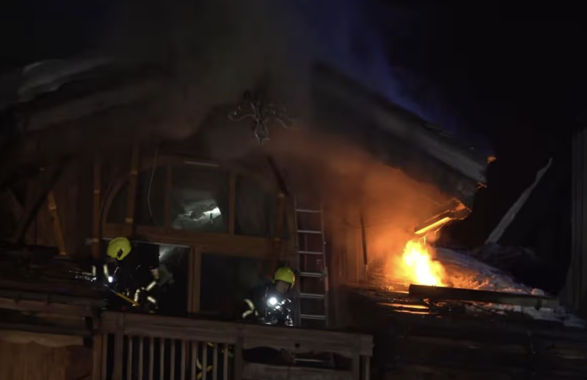 Trung tá Emmanuel Viaud thuộc Sở Cứu hỏa và Cứu hộ Savoie Viaud cho biết: hơn hai giờ sau khi đám cháy bùng phát, lực lượng cứu hỏa đang gặp khó khăn trong việc khống chế ngọn lửa. Mái nhà bị vùi lấp dưới một lớp tuyết dày, khiến việc xác định vị trí các "lỗ thoát khói" trở nên khó khăn. Ông nói thêm "Hiện tại chưa có thương vong nào".