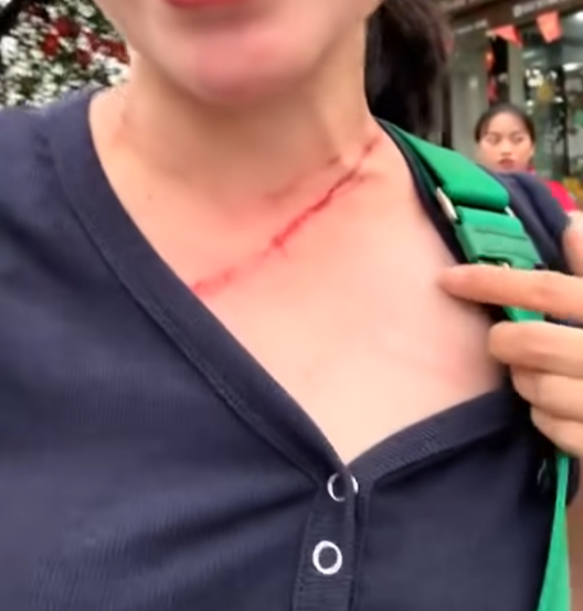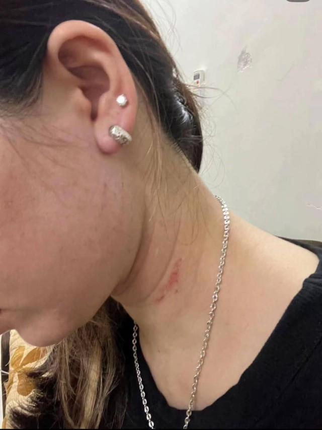 Trong đoạn video, người vợ xuất hiện với vết xước dài rớm máu trên cổ. Cô liên tục nói trong trạng thái vừa uất ức vừa đau đớn: "Tao có video mày đi với gái về đ:ánh tao cơ".