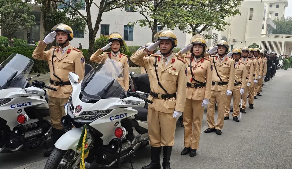 Sáng 12-12, cảnh sát giao toàn quốc tổ chức lễ xuất quân thực hiện kế hoạch. Ảnh: C08 cung cấp