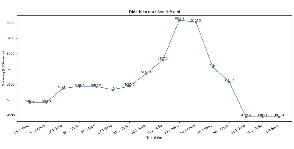 Giá vàng thế giới hiện đang giao dịch quanh ngưỡng 4.889,4 USD/ounce. Biểu đồ: Khương Duy