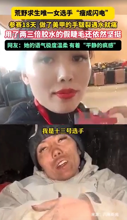 Yang Chaoqin, người chơi nữ duy nhất của cuộc thi sinh tồn khắc nghiệt ở Hồ Nam, gây sốc với hình ảnh gầy rộc, hốc hác sau 16 ngày sống trong rừng.