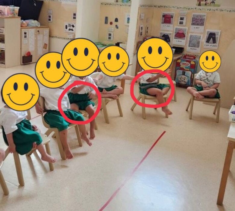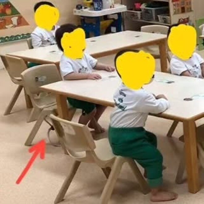 "Khi tôi phóng to bức ảnh, tôi vô cùng kinh ngạc khi thấy một sợi dây an toàn quấn quanh eo đứa con trai 23 tháng tuổi của tôi và một đứa trẻ khác, buộc chặt chúng vào ghế với chân cách mặt đất." - cô Li kể.
