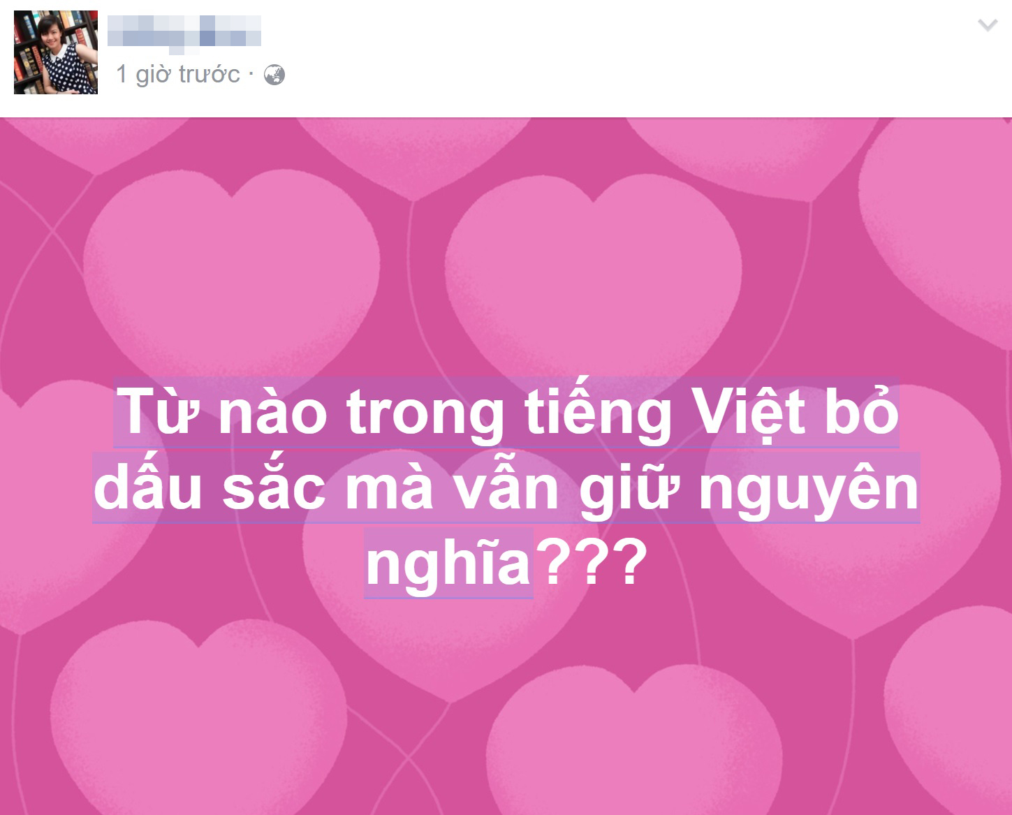 Dù bài kiểm tra trên là thật hay chỉ là sản phẩm vui đùa của ai đó, thì câu đố về tiếng Việt vẫn rất thú vị, thu hút được sự quan tâm của nhiều bạn trẻ. Rất nhiều người dùng Facebook đã đồng loạt đăng tải status hỏi nhau: "Từ nào trong tiếng Việt khi bỏ dấu sắc vẫn giữ nguyên nghĩa?", như một cách kiểm tra sự thông thạo ngôn ngữ của bạn bè. Rất nhanh, câu hỏi từ bài thi đã tạo nên một trào lưu đố vui thử trí thông minh nho nhỏ, đầy thú vị trên Facebook những giờ qua.