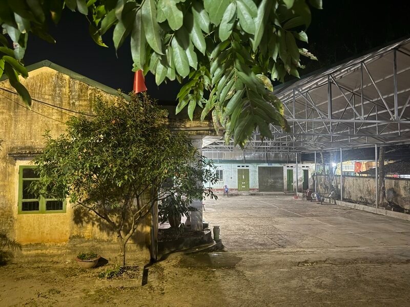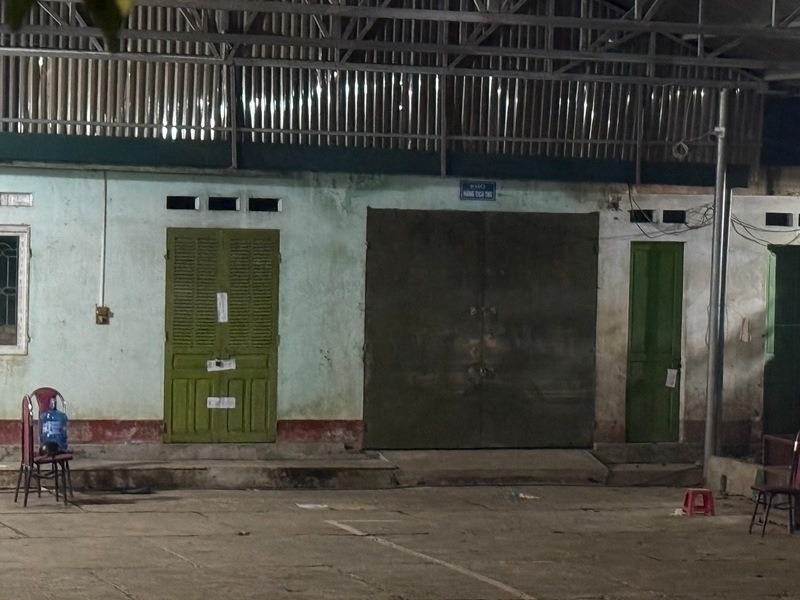 Bên trong khuôn viên có hai dãy nhà và một khoảng sân có mái che. Trong đó, một khu nhà được cho là nhà ăn, bếp có cánh cửa màu xanh đang được niêm phong.