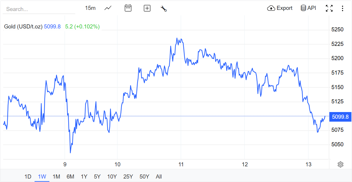 Giá vàng tương lai giảm gần 100 USD và hiện đang giao dịch dưới mức 5.100 USD/ounce. Sự điều chỉnh này phản ánh một sự thay đổi tinh tế nhưng quan trọng: luận điểm cho rằng rủi ro địa chính trị chỉ có thể đẩy giá kim loại quý lên cao đang được kiểm chứng, và hiện tại, nó đang không thành công.