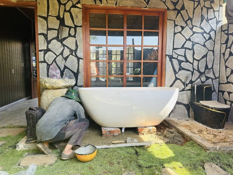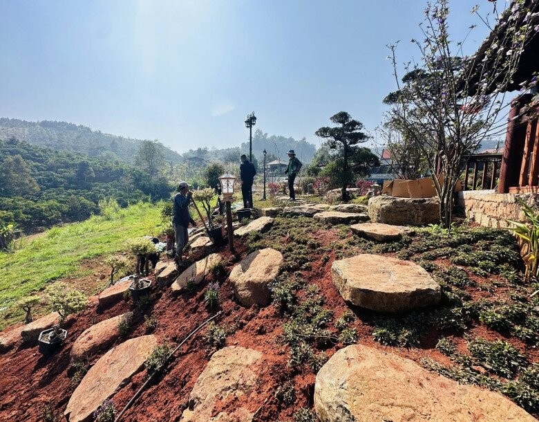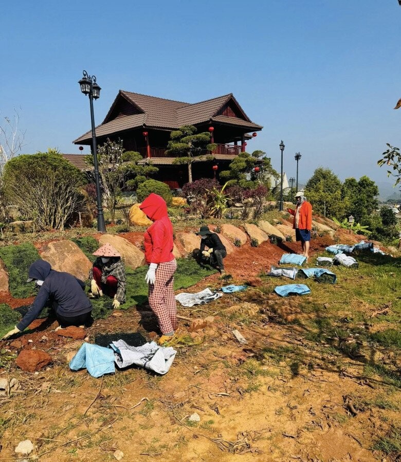 Hoàng Mập đã vô cùng hài lòng, cảm ơn gia đình em gái. Anh cho trồng nhiều hoa, cây cảnh, làm bậc đá xung quanh, tạo cảnh quan rất đẹp mắt.