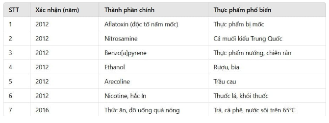 Dưới đây là bảy nhóm thực phẩm có chứa các chất thuộc nhóm 1 trong danh sách này: