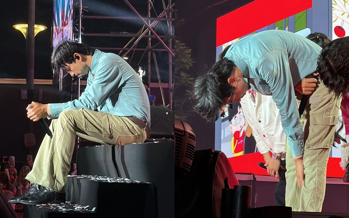 Xuất hiện tại một đêm nhạc tối 12/12, những chia sẻ của Đen Vâu với khán giả gây chú ý. Ngoài ra, hình ảnh rapper cúi đầu trên sân khấu cũng đang được nhiều tài khoản mạng chia sẻ.