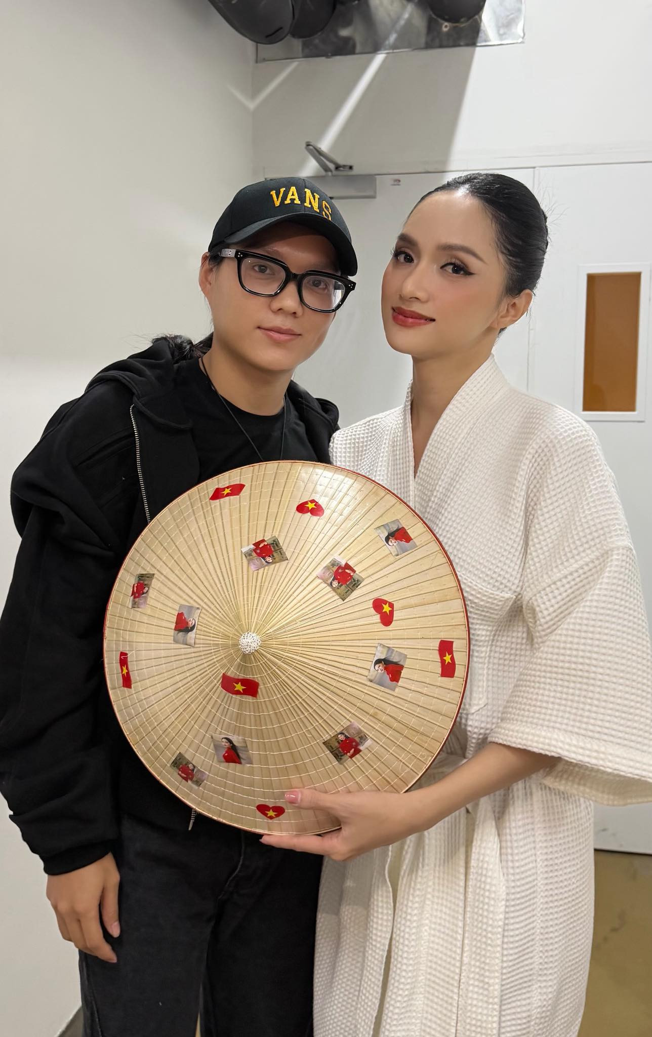 Xin phép mọi người cho em được giữ lời hứa với chị Giang, vì chị là người luôn lắng nghe, động viên em vào thời điểm em khó khăn nhất . Mọi người thương em, cho em được đến Chung kết Miss Universe 2025 cổ vũ chị Giang lần này nha...".