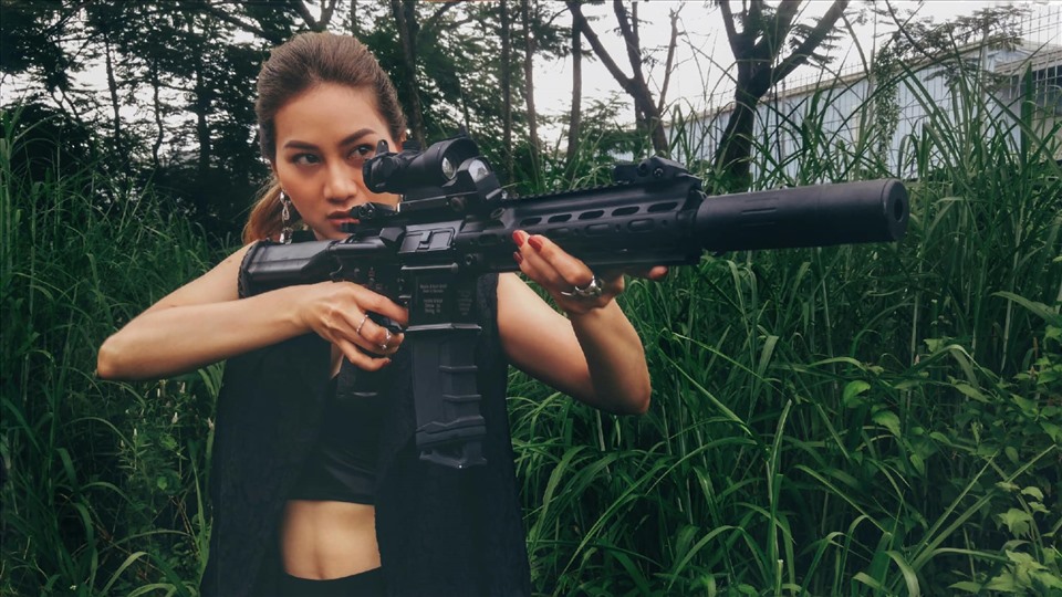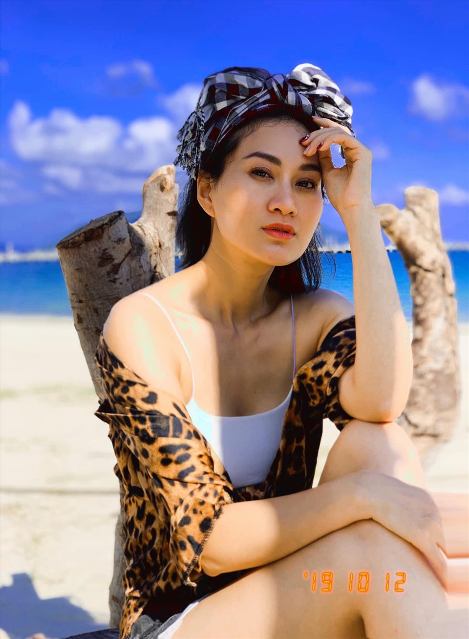 Cô kể, có một lần cô lén chồng quay một cảnh ng:uy h:iểm trong bộ phim "7 lá bài" của đạo diễn Quốc Thịnh đó là bị ném từ trên cầu xuống sông trong khi bản thân cô lại không biết bơi.
