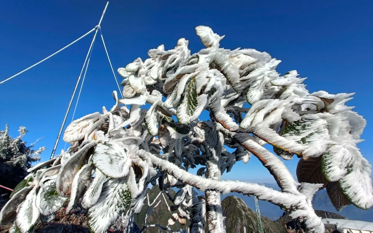 Băng giá phủ kín cành cây, ngọn cỏ trên đỉnh Fansipan. Ảnh: Sun World Fansipan Legend