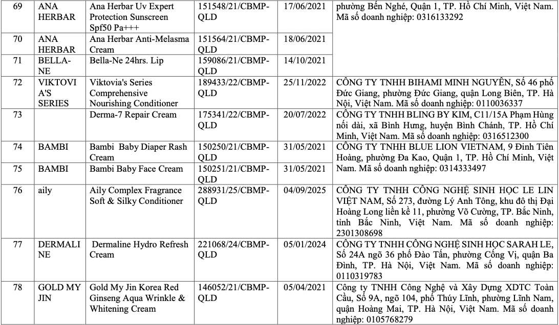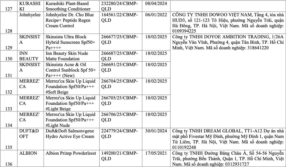 Trước đó, Vnexpress thông tin thêm trong bài đăng: "Thu hồi gần 300 mỹ phẩm do cập nhật danh mục chất cấm". Cụ thể như sau: