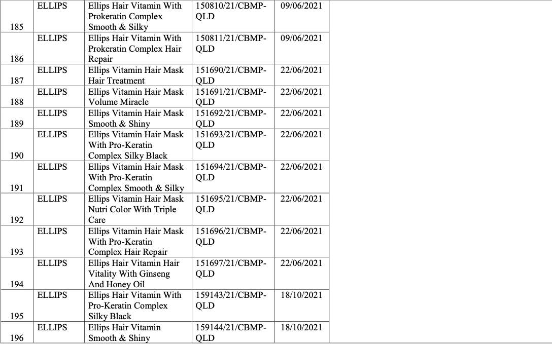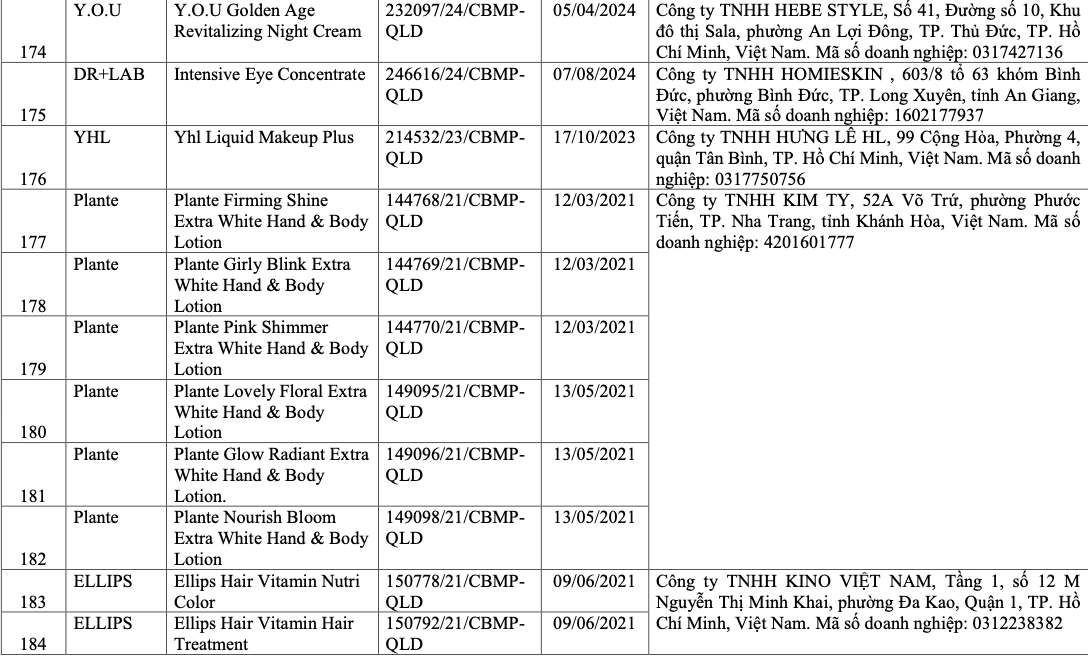 Theo quyết định, cơ quan này thu hồi 291 số tiếp nhận Phiếu công bố sản phẩm mỹ phẩm và yêu cầu đình chỉ lưu hành, thu hồi toàn bộ các lô sản phẩm còn hạn sử dụng thuộc danh mục kèm theo. Kể từ thời điểm quyết định có hiệu lực, các sản phẩm trên không được tiếp tục lưu thông trên thị trường.