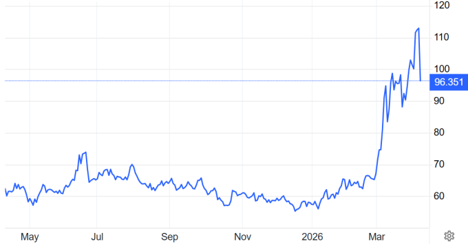Mở cửa phiên giao dịch 8/4, giá dầu thô Mỹ WTI có thời điểm giảm gần 19% về 91,64 USD một thùng. Hiện tại, giá dao động quanh 96 USD. Dầu Brent hạ 15% về sát 93 USD.