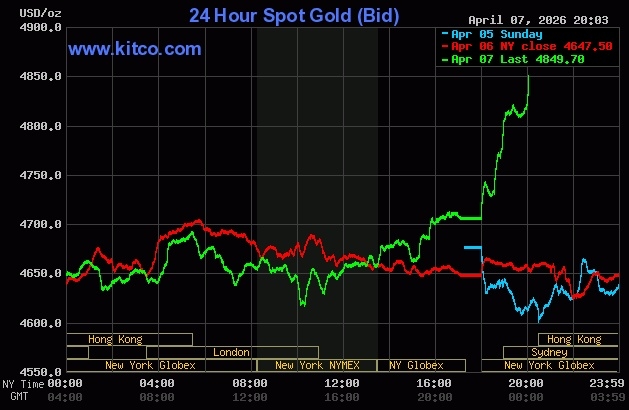 Giá vàng thế giới tăng vọt sáng 8/4. Đồ thị: Kitco