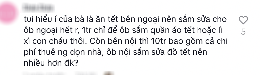Dù vậy, ngay cả những người đồng cảm cũng thừa nhận rằng con số 10 triệu cho Tết nội vẫn khá lớn nếu đặt cạnh 1 triệu cho Tết ngoại. Sự chênh lệch này, dù có lý do, vẫn dễ tạo cảm giác "thiên vị".