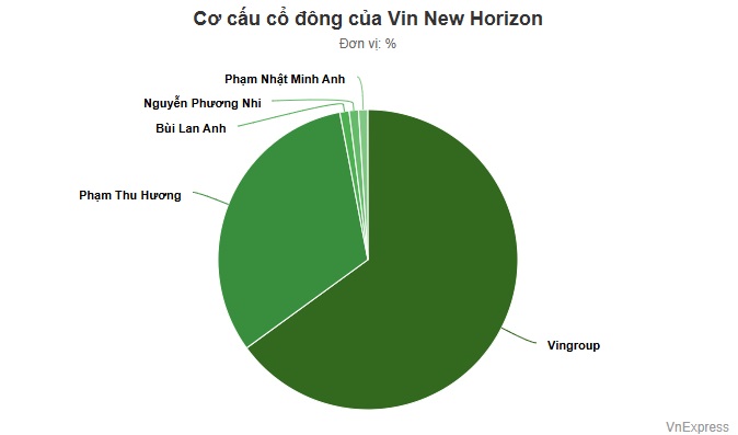 Bà Phạm Thu Hương, vợ ông Phạm Nhật Vượng, sở hữu 32% cổ phần của công ty này và đảm nhiệm chức Chủ tịch Vin New Horizon.