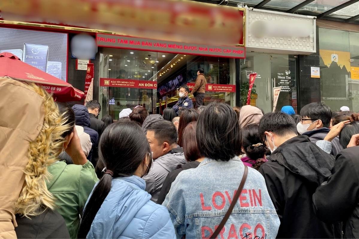 Còn với anh Vũ Văn Hà (Mỹ Đình, Hà Nội) đến sát giờ giao dịch nên nhanh chóng đứng vào xếp hàng. Anh Hà cho hay: "Cửa hàng thông báo sáng nay giới hạn mỗi người được mua 5 chỉ vàng".
